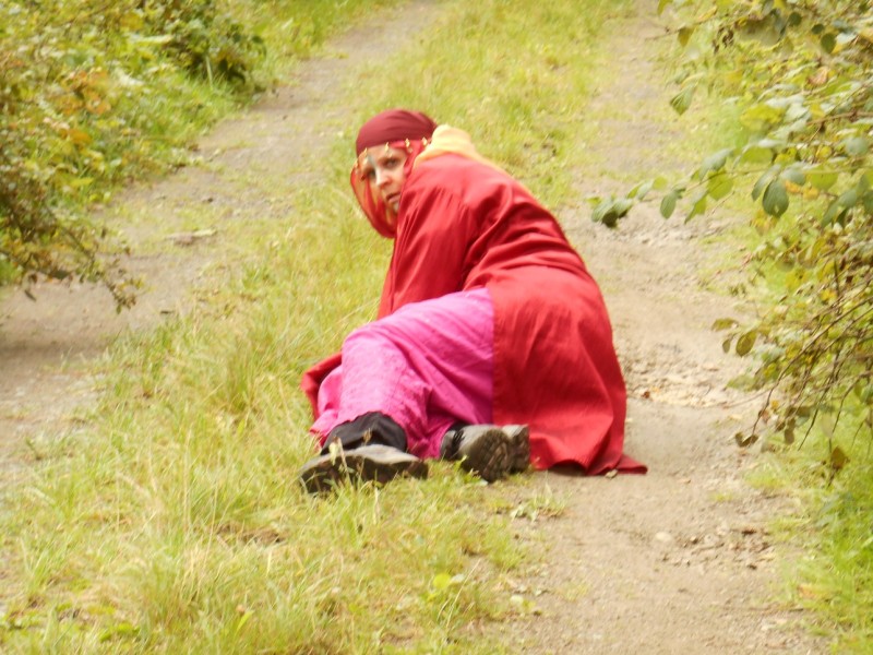 Die Einheimische flieht und stürzt